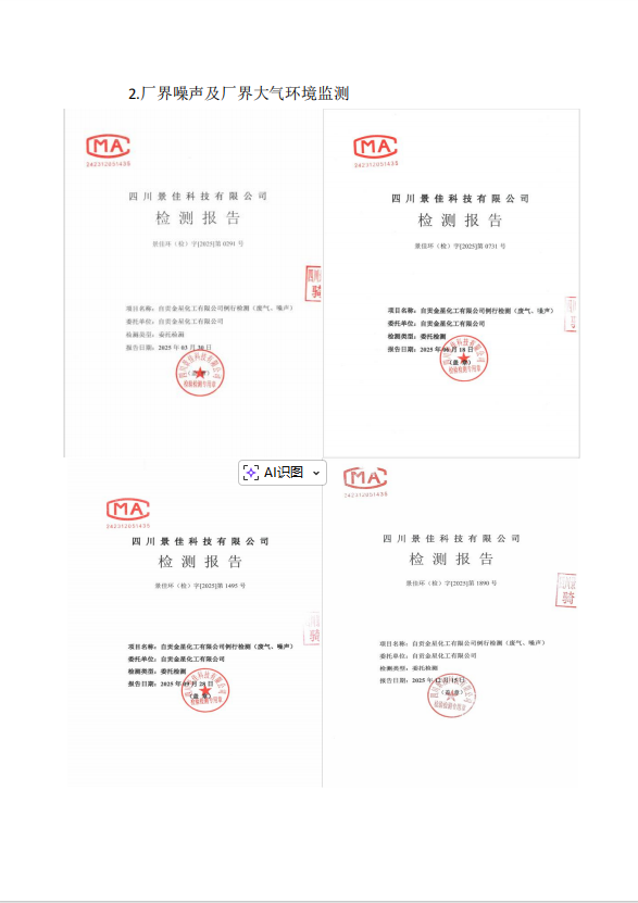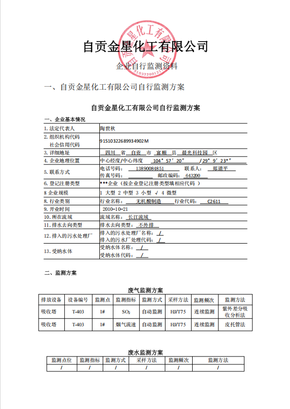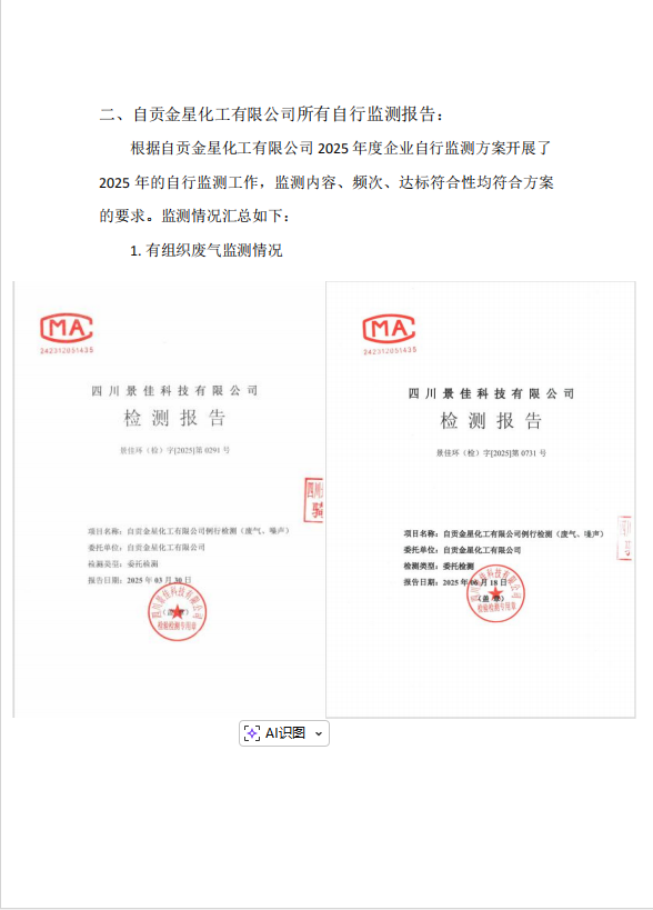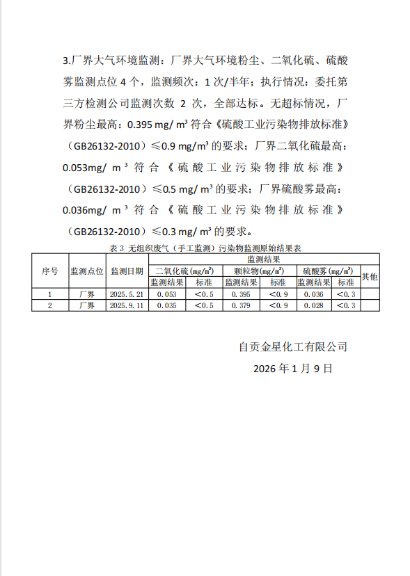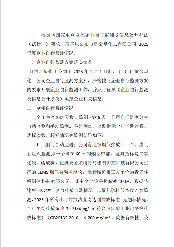 自貢金星化工有限公司自行監(jiān)測(cè)2025年報(bào)告